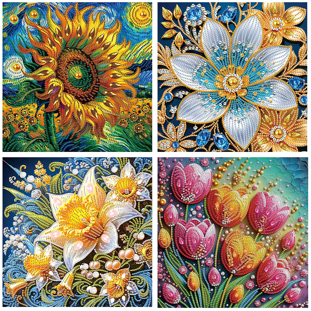 4pcs Diamond Painting - Crystal Rhinestone - Flowers 30x30cm