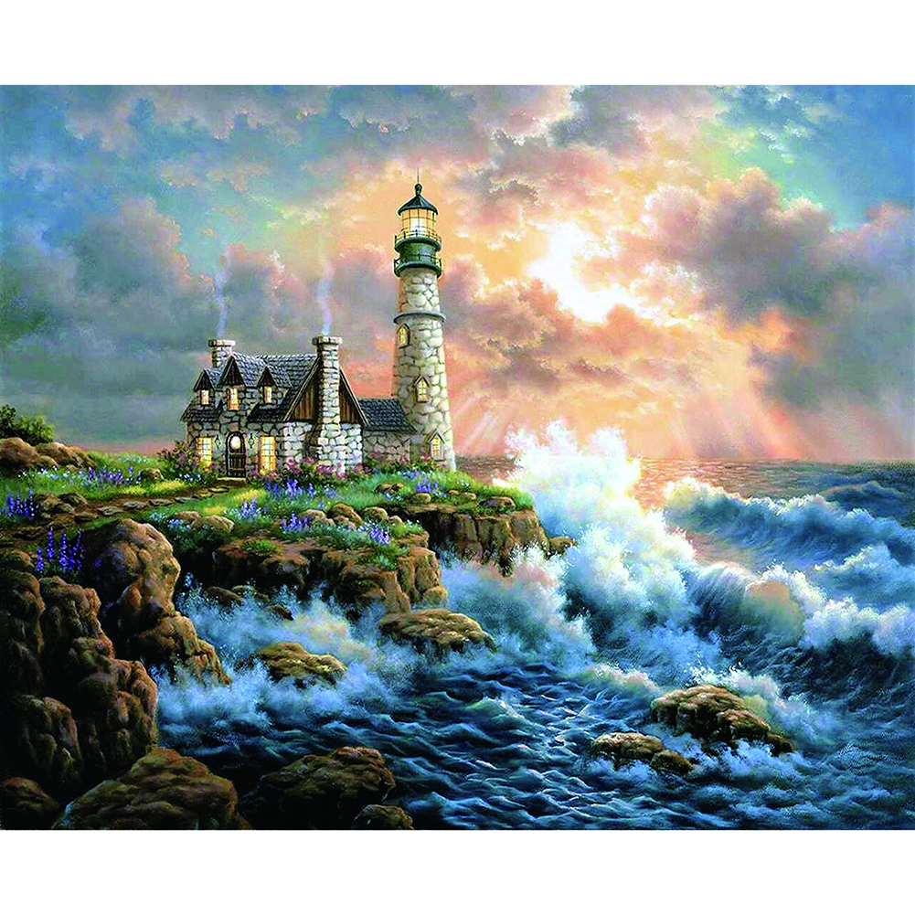 60x50cm Beach Lighthouse 5D DIY Diamond Painting Kits Full Round Drill Wall Picture Handmade Rhinestones Mosaic Craft Gift Home Decor