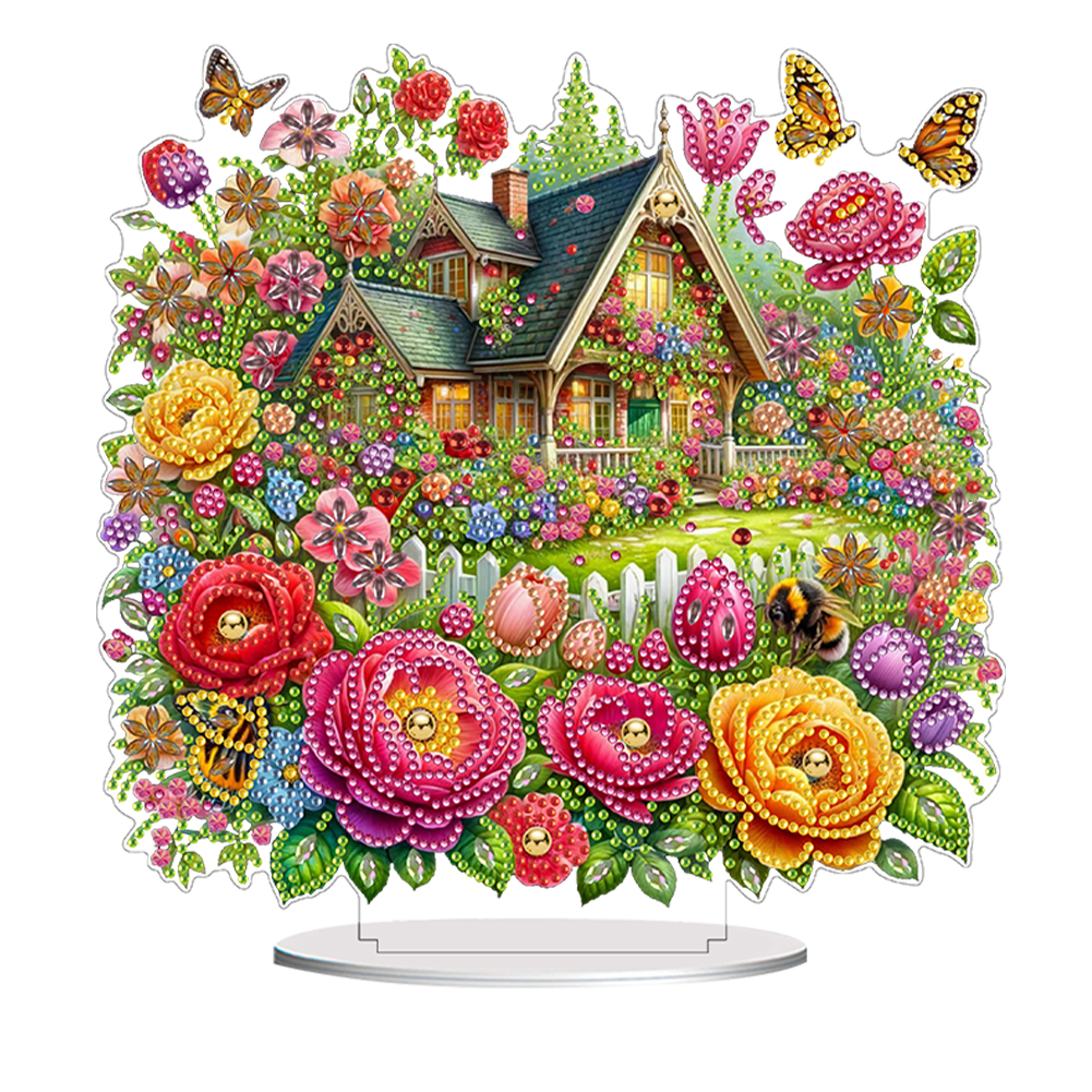 DIY Acrylic Diamond Painting Desktop Tabletop Ornament - Flower House
