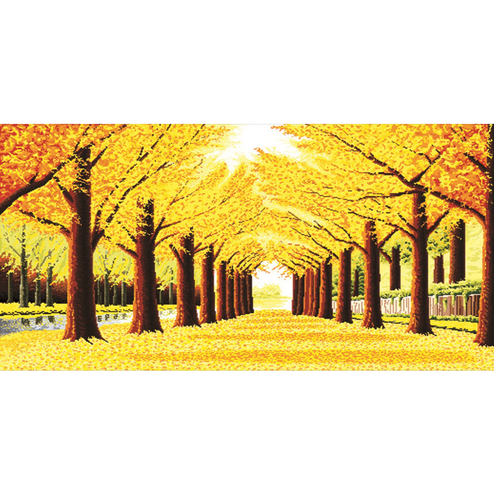 5D DIY Full Round Drill Diamond Painting Yellow Leaves Road Mosaic Kit Rhinestone Drawing Picture Home Decoration Art Craft